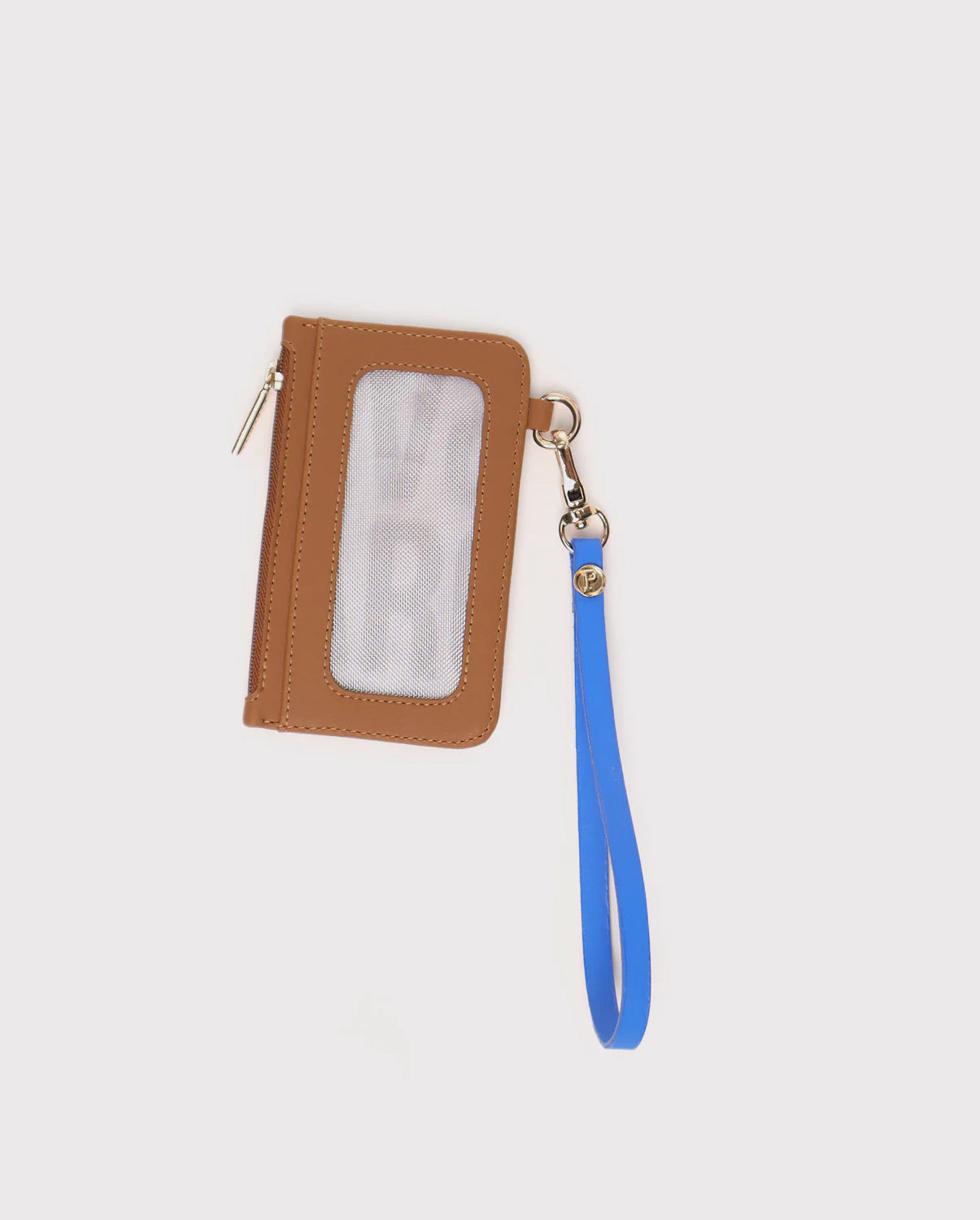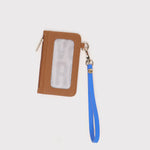 Porta documentos mediano con 4 ranuras para tarjetas, una ventana trasera transparente para documentos o fotos y un bolsillo central con cremallera ideal para monedas. Es un diseño compacto y funcional que combina estilo y practicidad en un diseño juvenil y moderno, que gracias a su manija removible permite ser llevado en la muñeca.