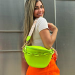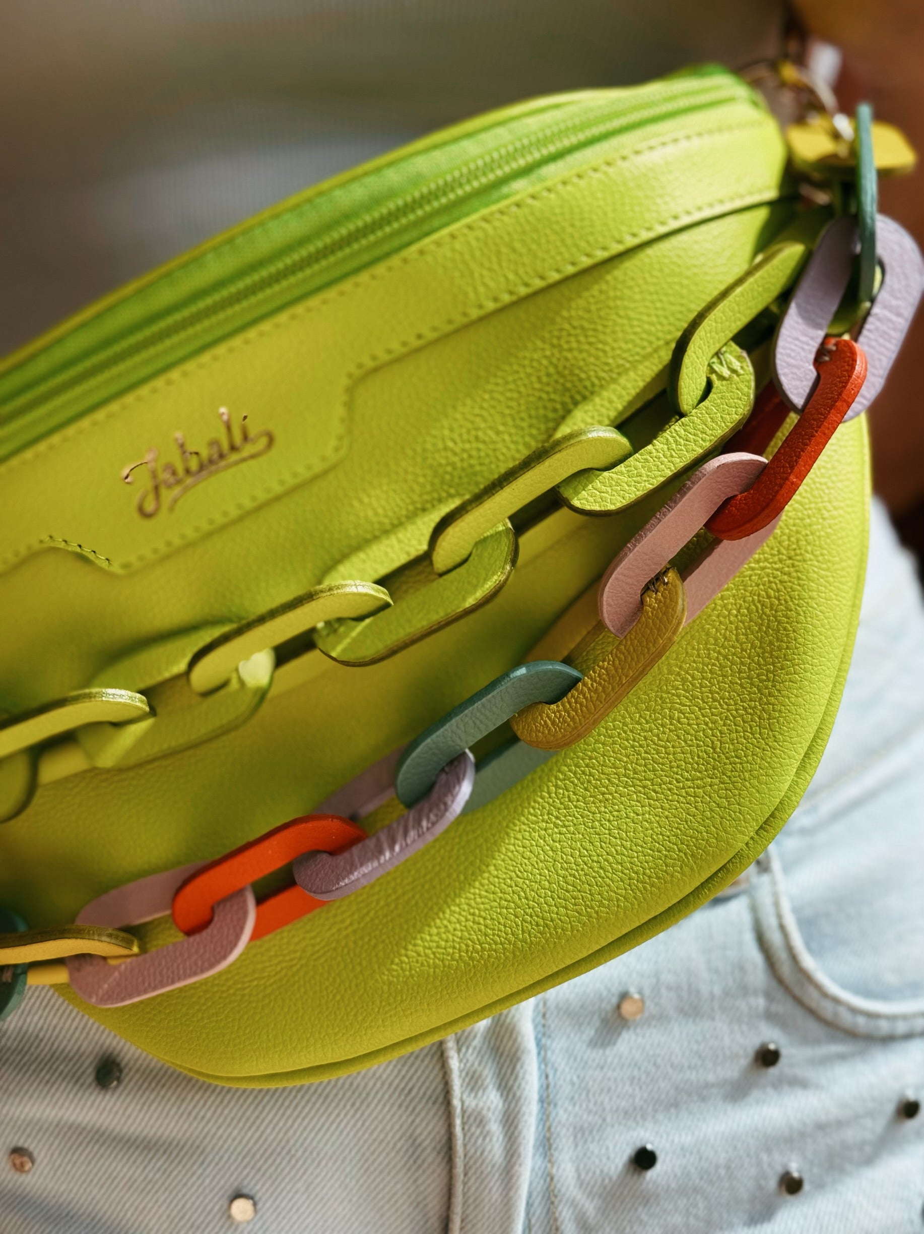 100% cuero con chain en cuero y strap en cuero tono a tono, incluye accesorio del mismo color de la cartera.