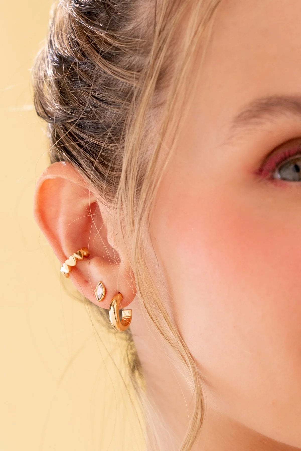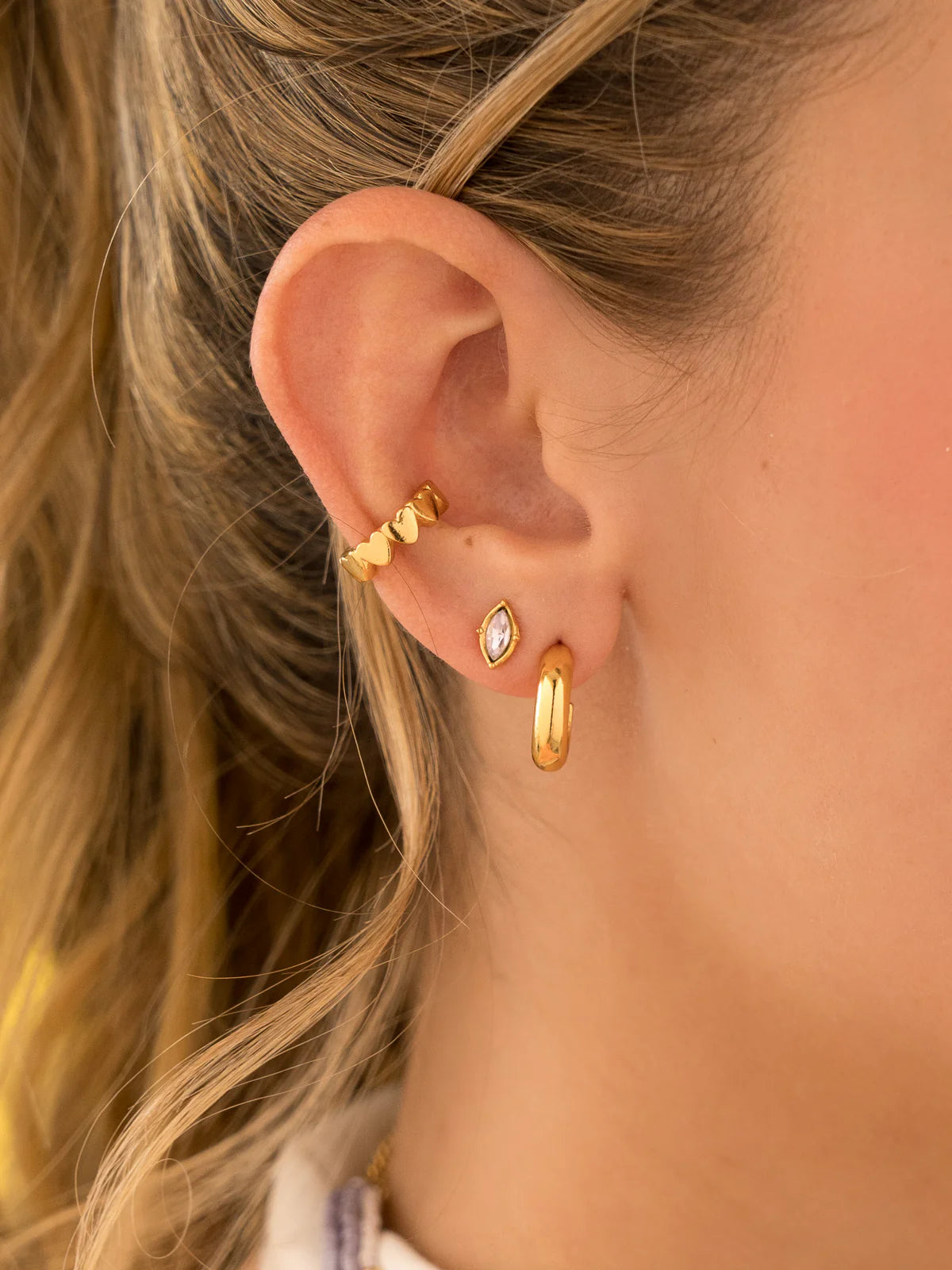 • Incluye: 1 par de topos de luna, 1 par de topos corazón y 1 earcuff.