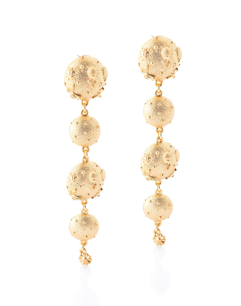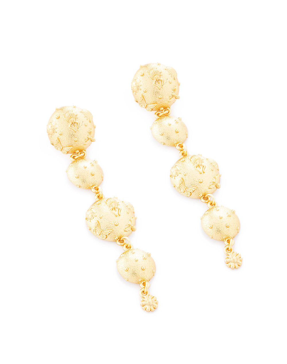 Hand-carved earrings in 24K gold plated copper alloy.