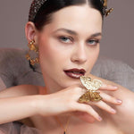 Tallado a mano en una aleación de cobre con baño de oro 24k circones y resina especial. Libre de niquel