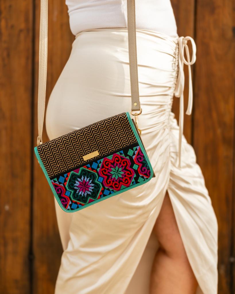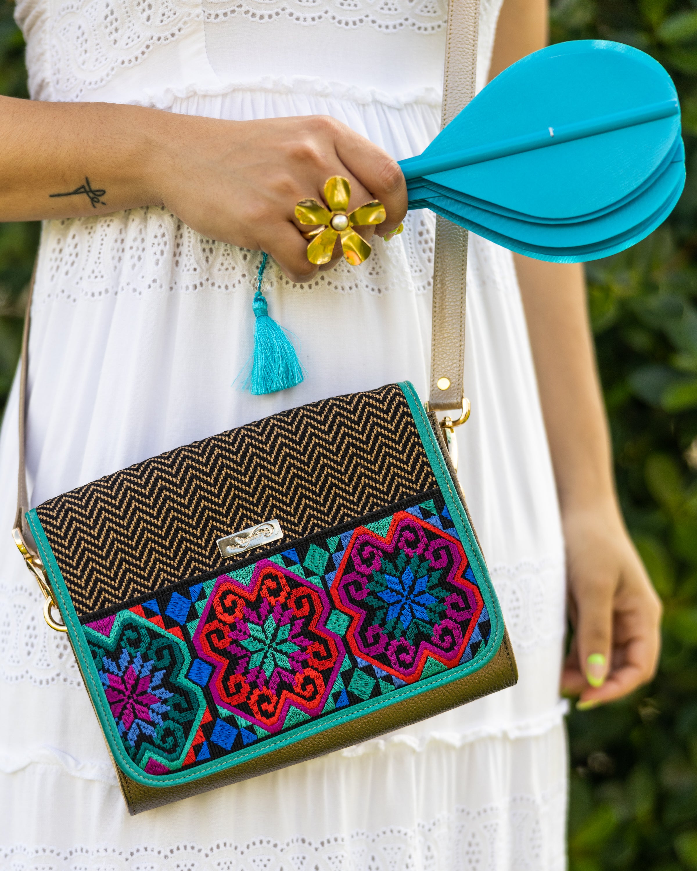 In The Andes region, artisans hand-weave textiles utilizing ancestral techniques that have been in their families over time. The "Telar Horizontal de Doble Pedal" is the technique that unifies the entire Andean culture that crosses Colombia. The well-meditated selection of colors, patterns, and styles incorporate flora, fauna, and culture into every detail of this masterpiece. These ancestral techniques are combined with leather for a more elevated and fashionable look.
