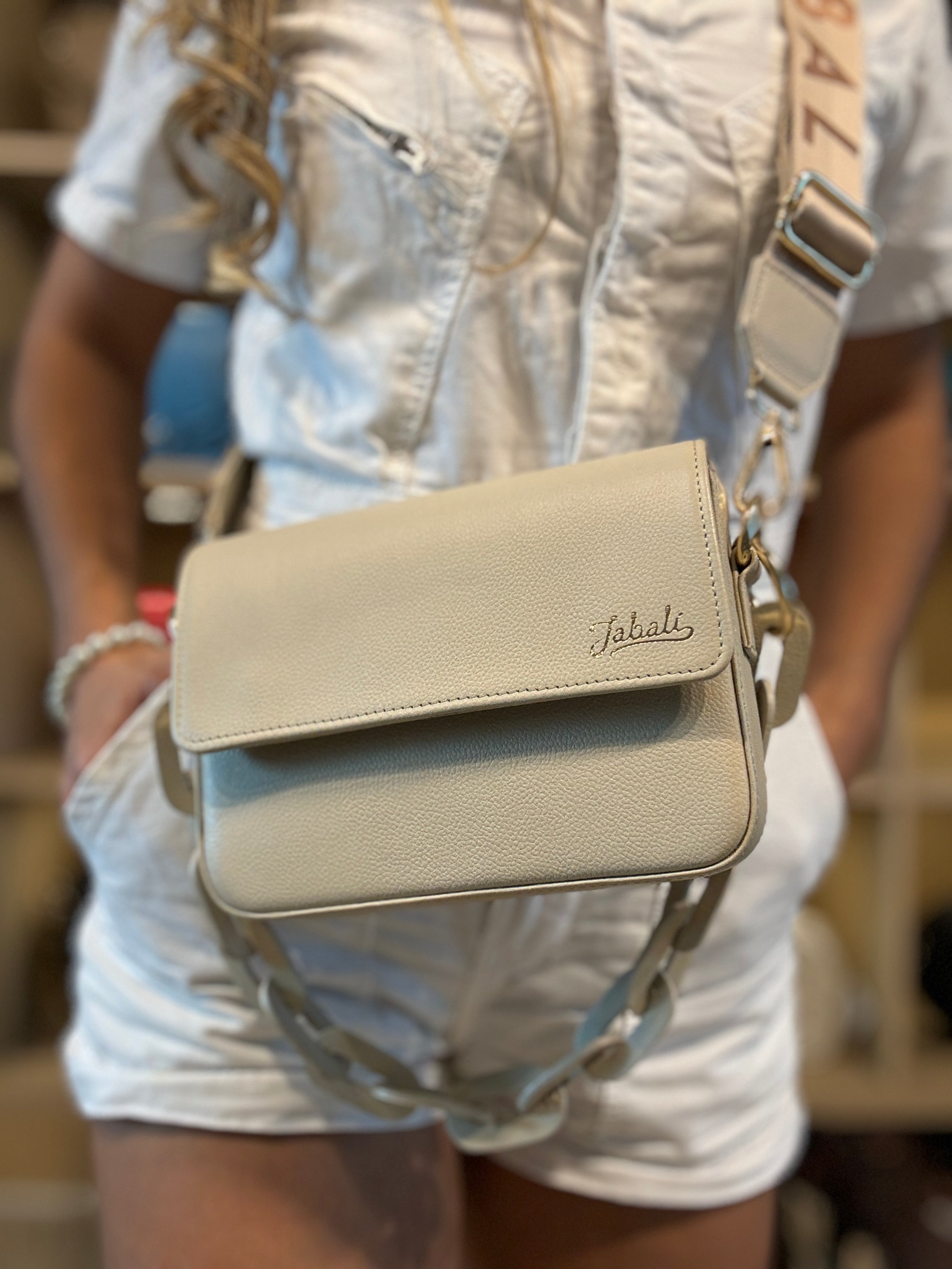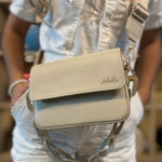 100% cuero con chain en cuero y strap en cuero tono a tono, incluye accesorio del mismo color de la cartera.