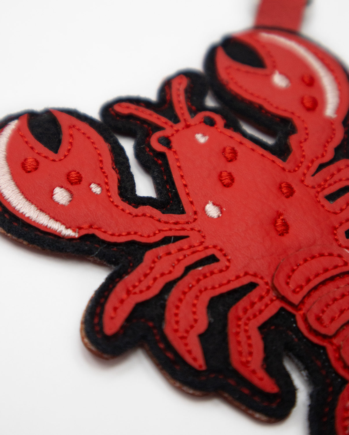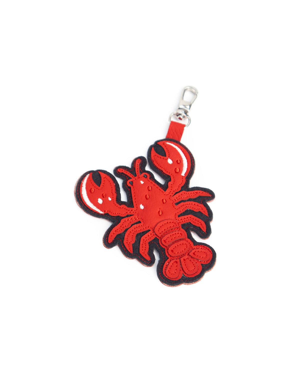 Charm coleccionable de langosta, bordado y con mosquetón niquelado. Ideal para usar como llavero o personalizar tu bolso preferido.