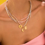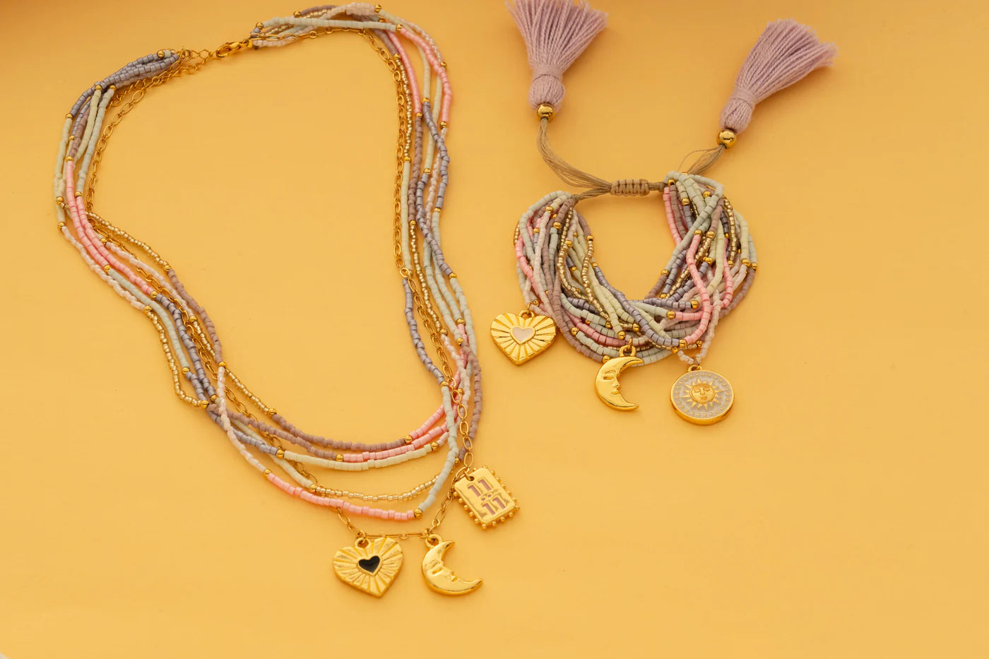 • Dijes del collar en Zamak (aleación de metales) con baño de oro de 24k.