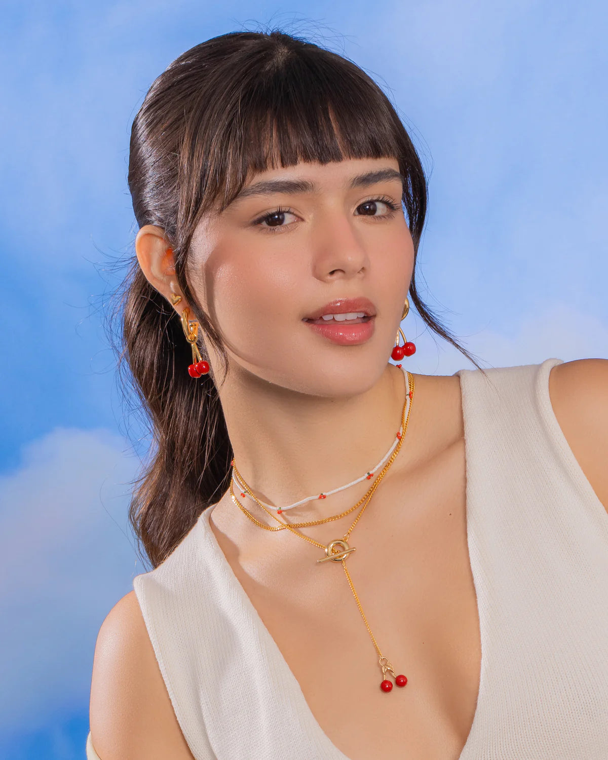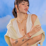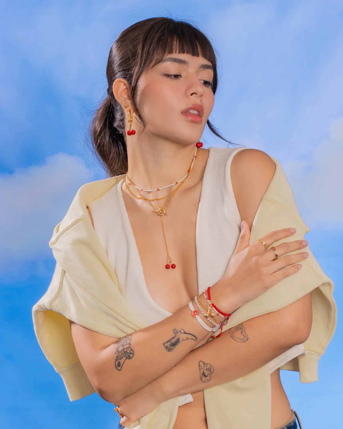 • Dijes del collar en Zamak (aleación de metales) con baño de oro de 24k.