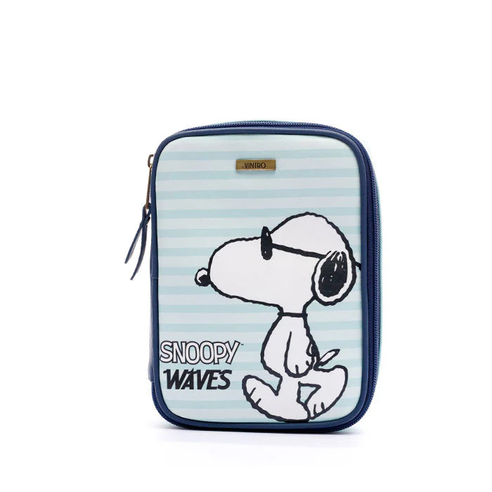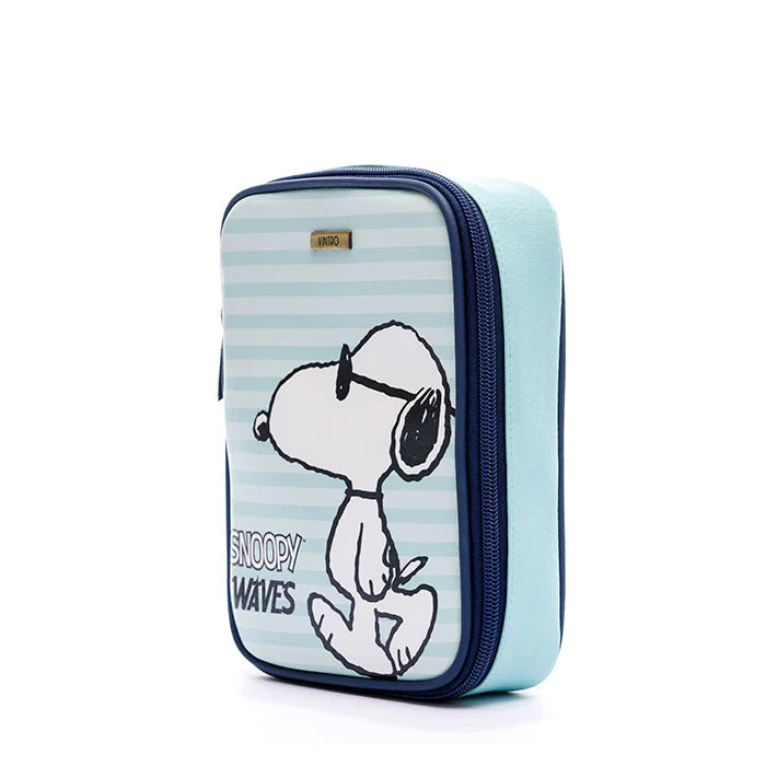 Cosmetiquera Estonia inspirado en nuestra colección Snoopy x Vintro. Su tapa con resorte permite organizar tus colores, marcadores o brochas de maquillaje de manera práctica y rápida. Ideal para quienes buscan un accesorio que combine estilo y funcionalidad. Elaborada en cuero vegano 100% Colombiano.