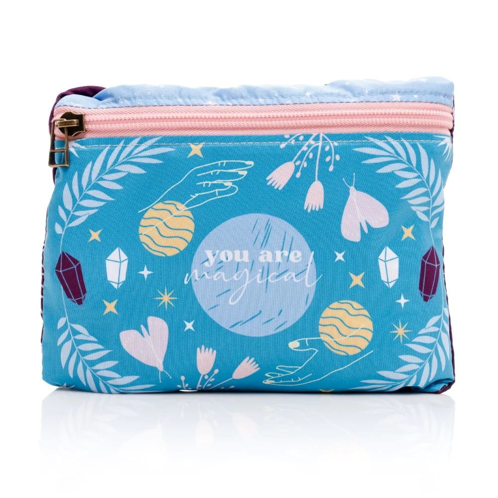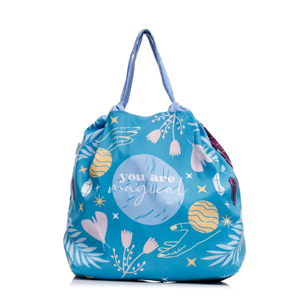 Bolsa ecológica en material antifluido estampada en la colección Magia, ideal para el mercado, la playa o simplemente para cargar tus cosas, puedes doblar para llevarla en tu bolso. Bolsillo interior, 100% Colombiano.