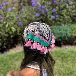 This 100% handmade scarf will give your attire a special touch. In these, the technique of hand embroidery is elevated with crystals, shisha mirrors, coins, and decorative tassels.