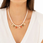 • Dijes del collar en Zamak (aleación de metales) con baño de oro de 24k.