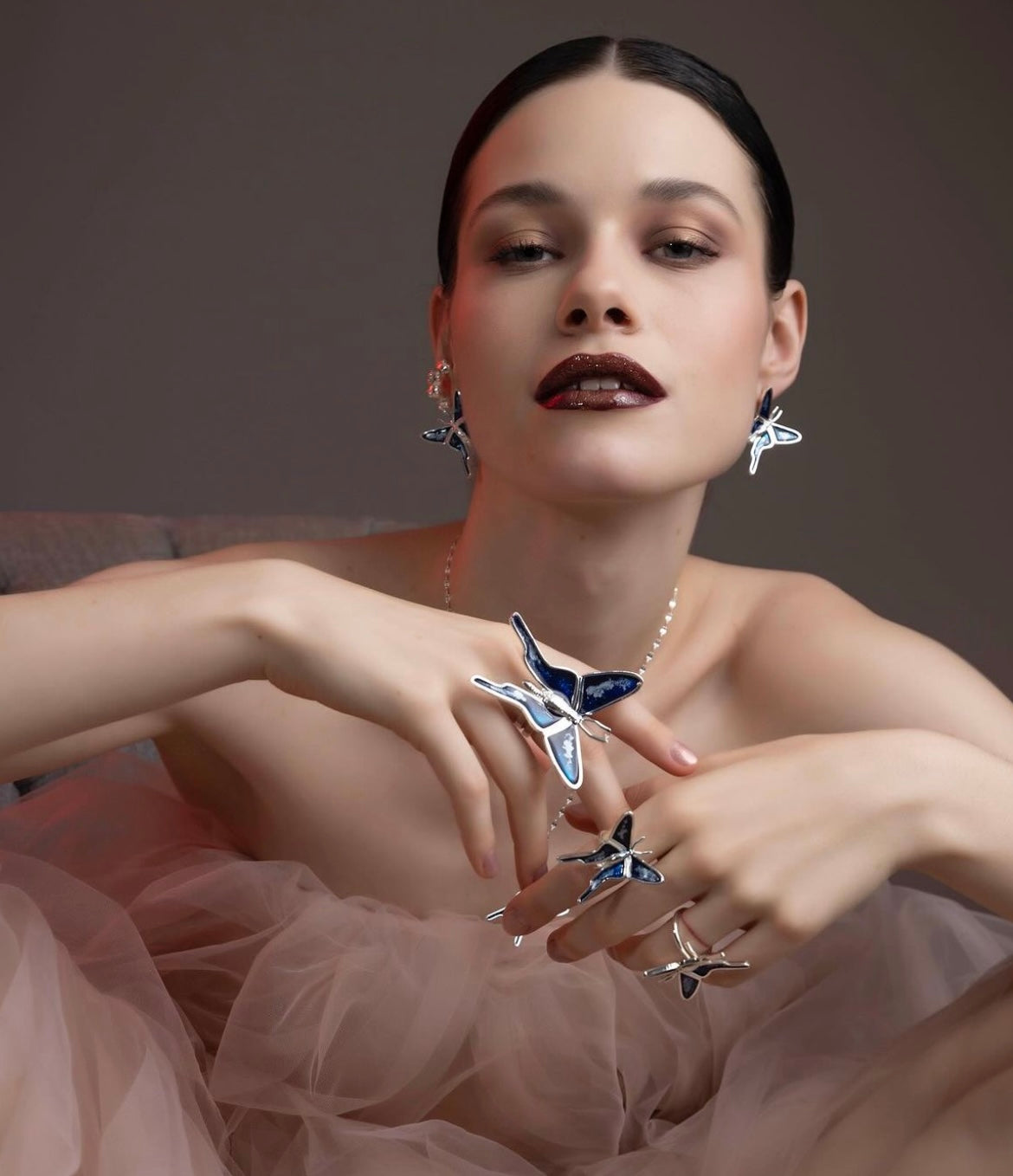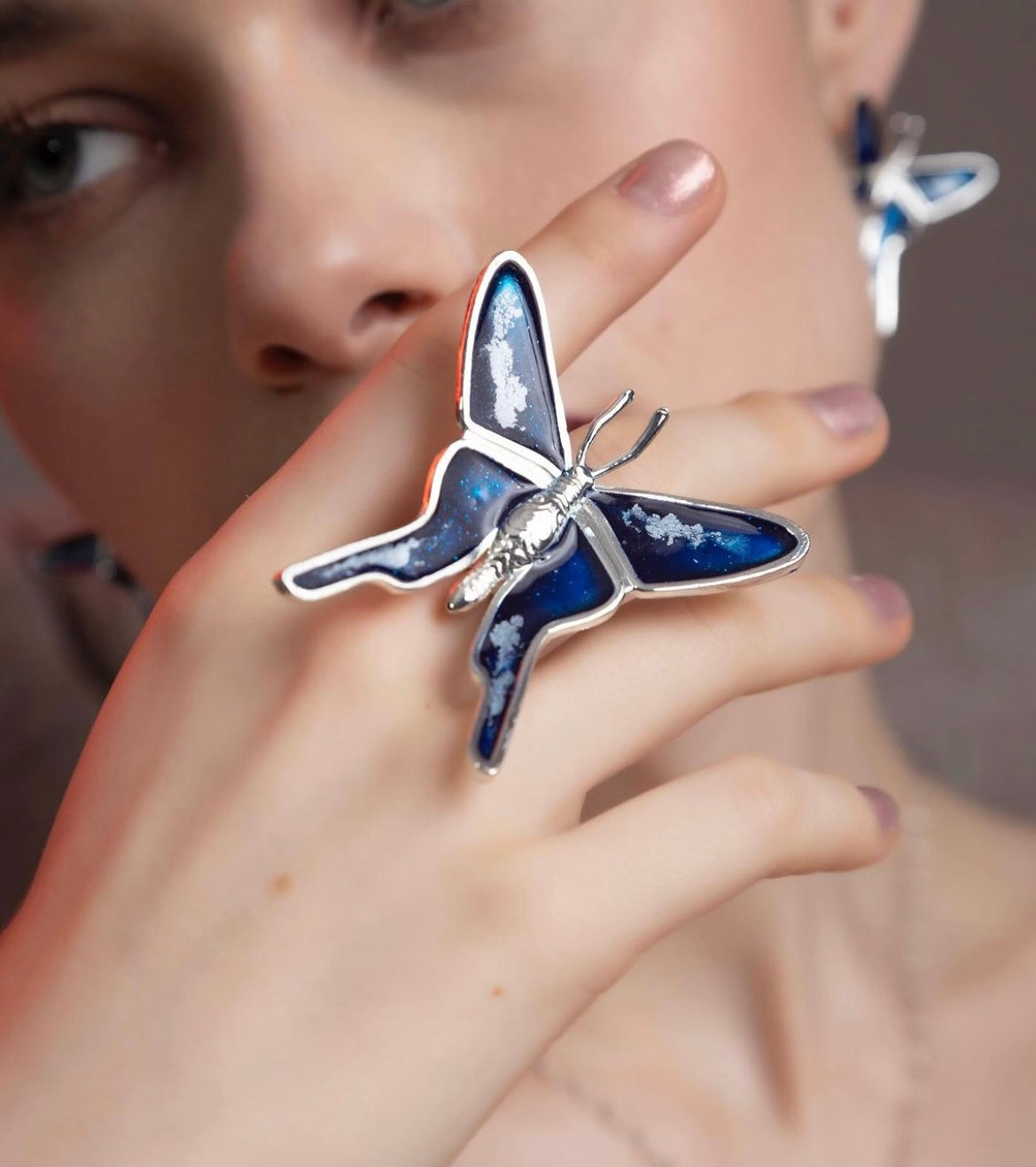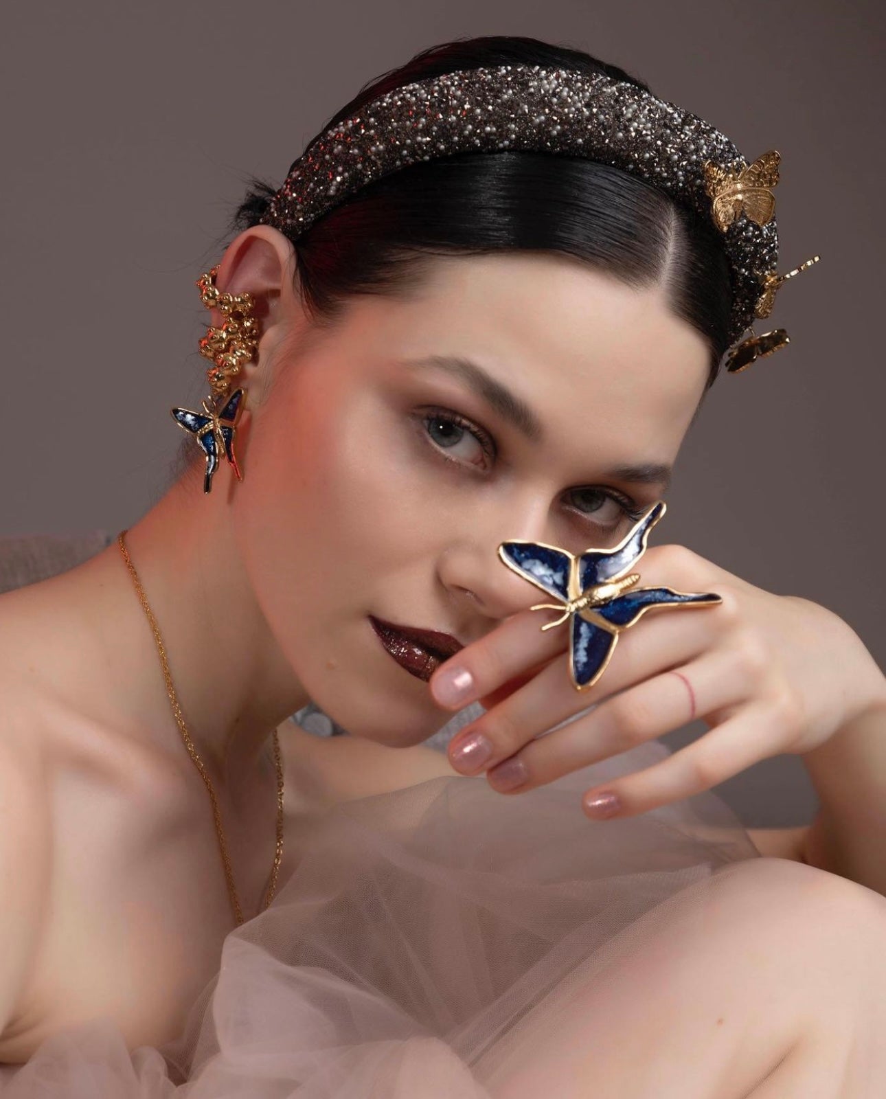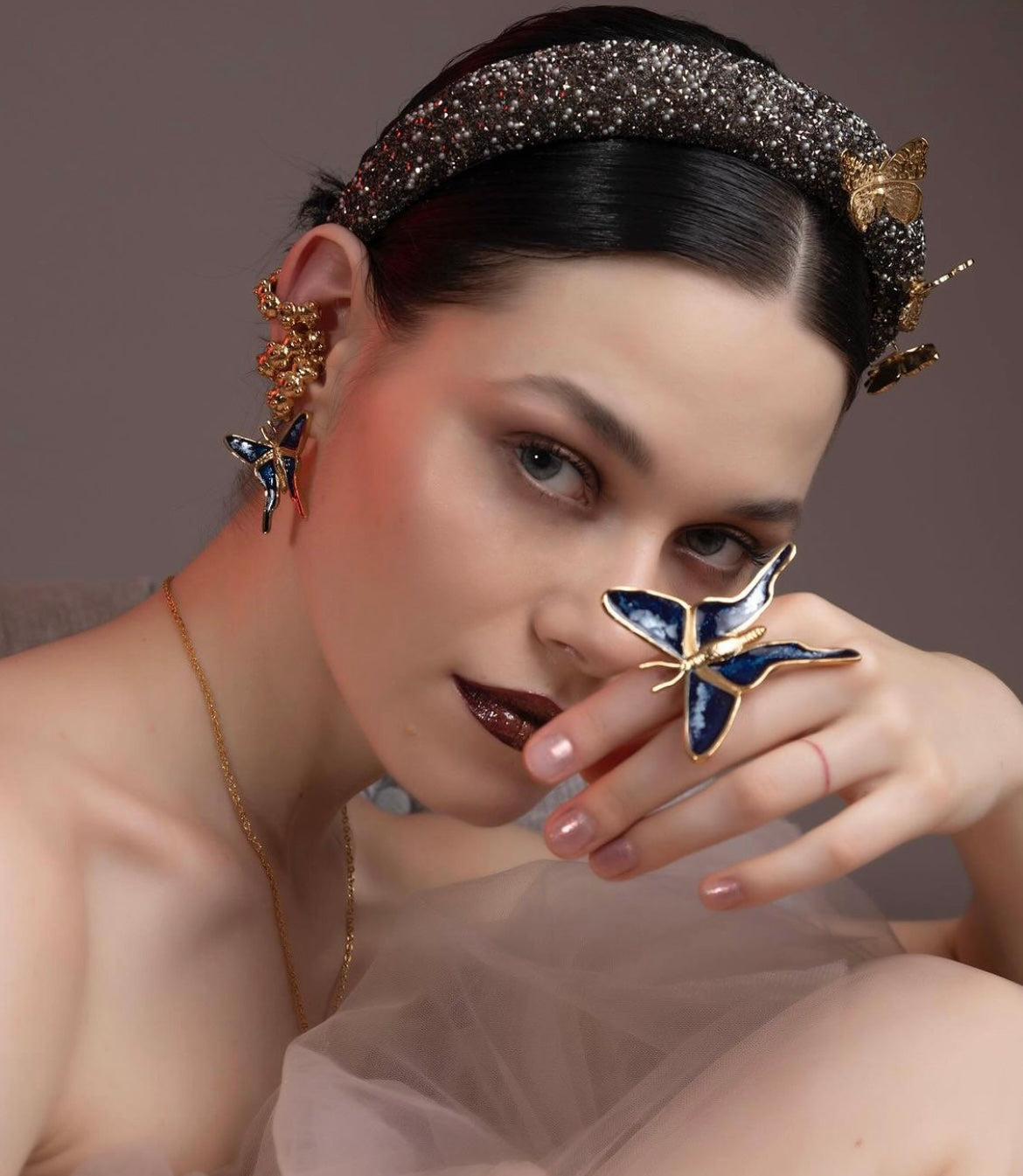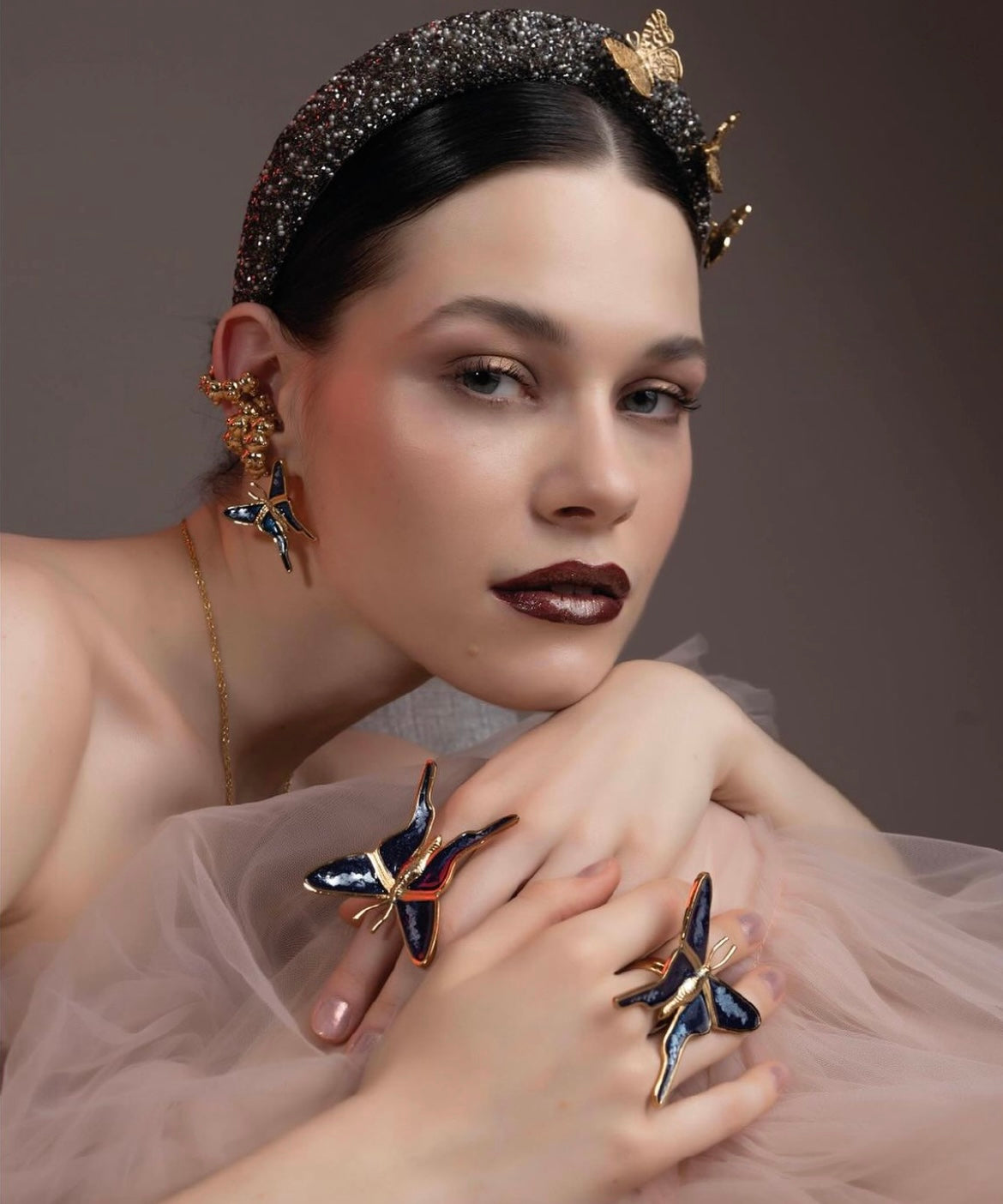 Tallado a mano en una aleación de cobre con baño de oro y resina especial.