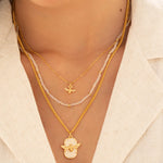 • Dijes de los collares en Zamak (aleación de metales) con baño de oro de 24k.