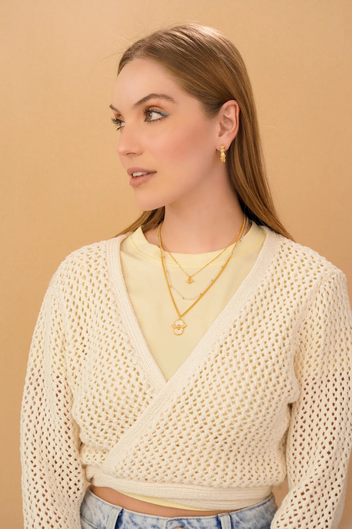 • Cadenas y collares en bronce con baño de oro de 24k.