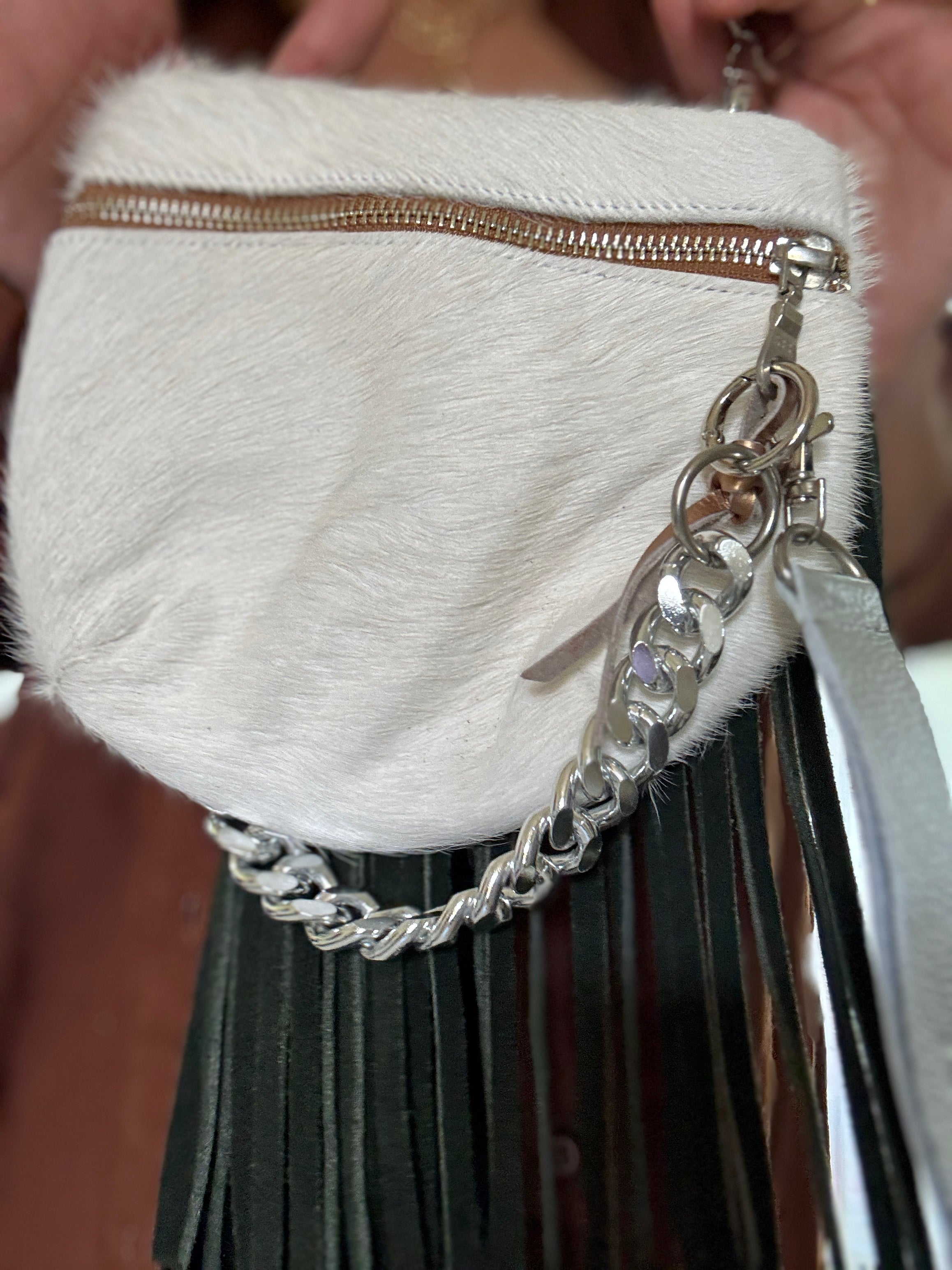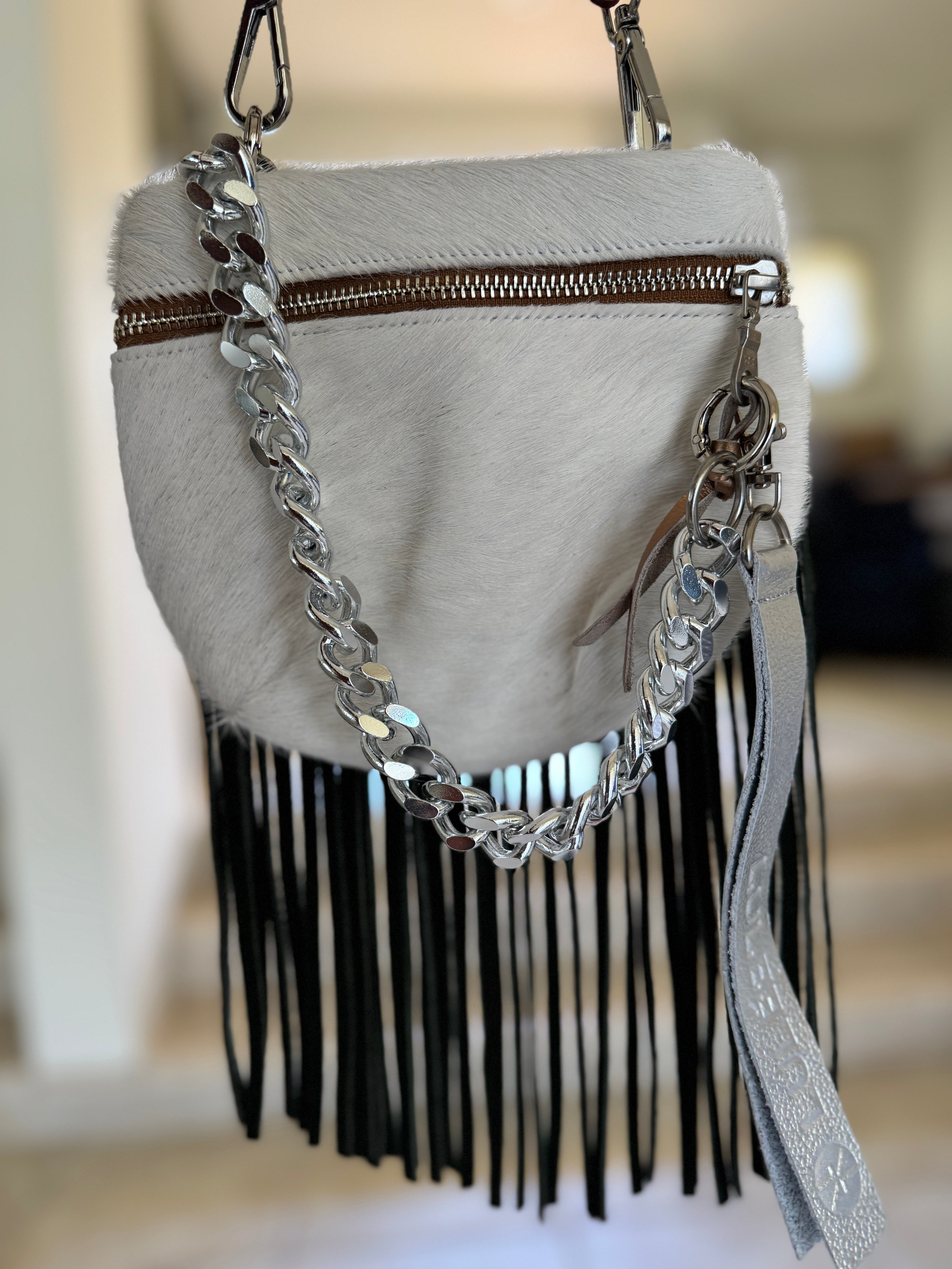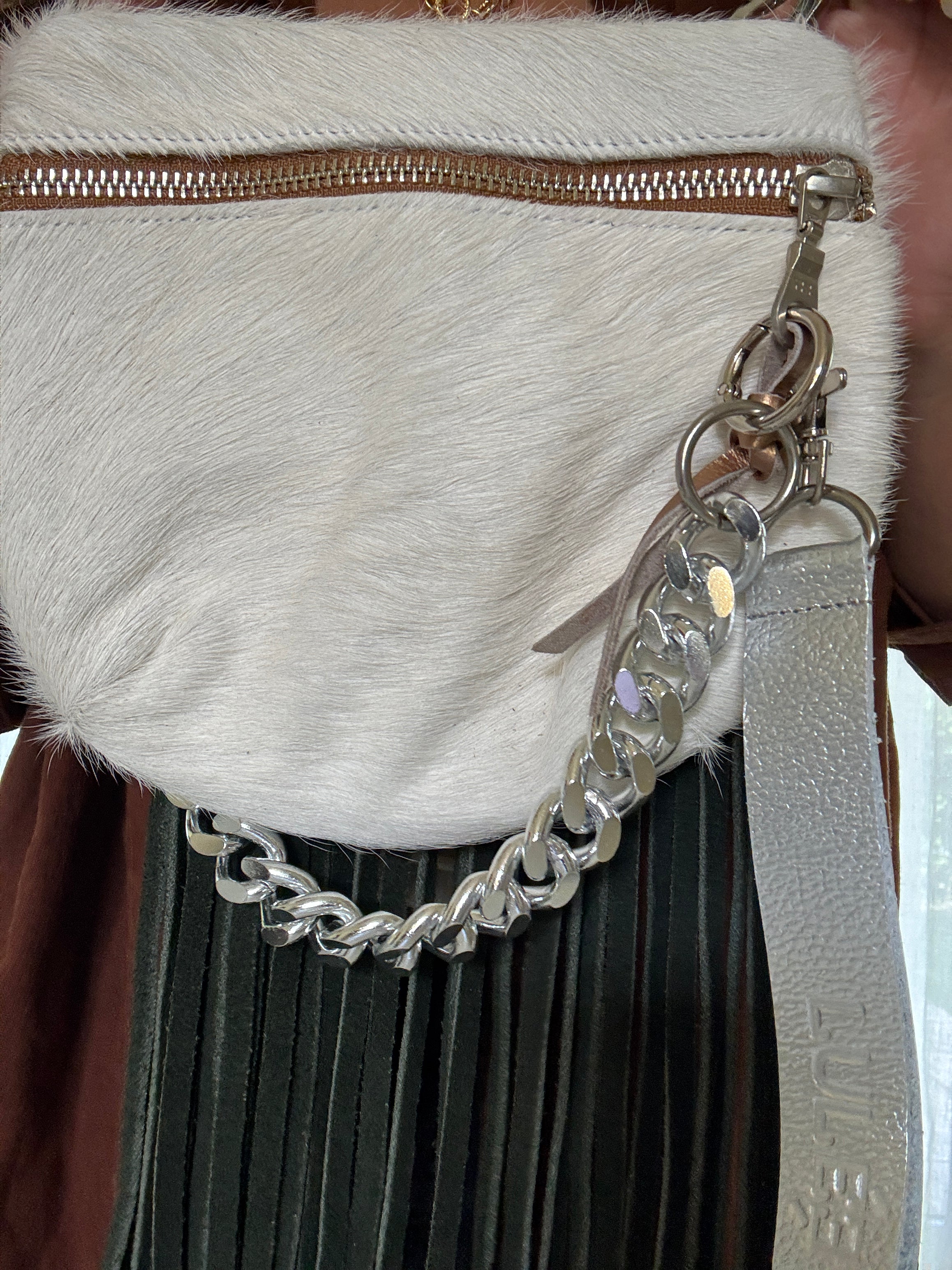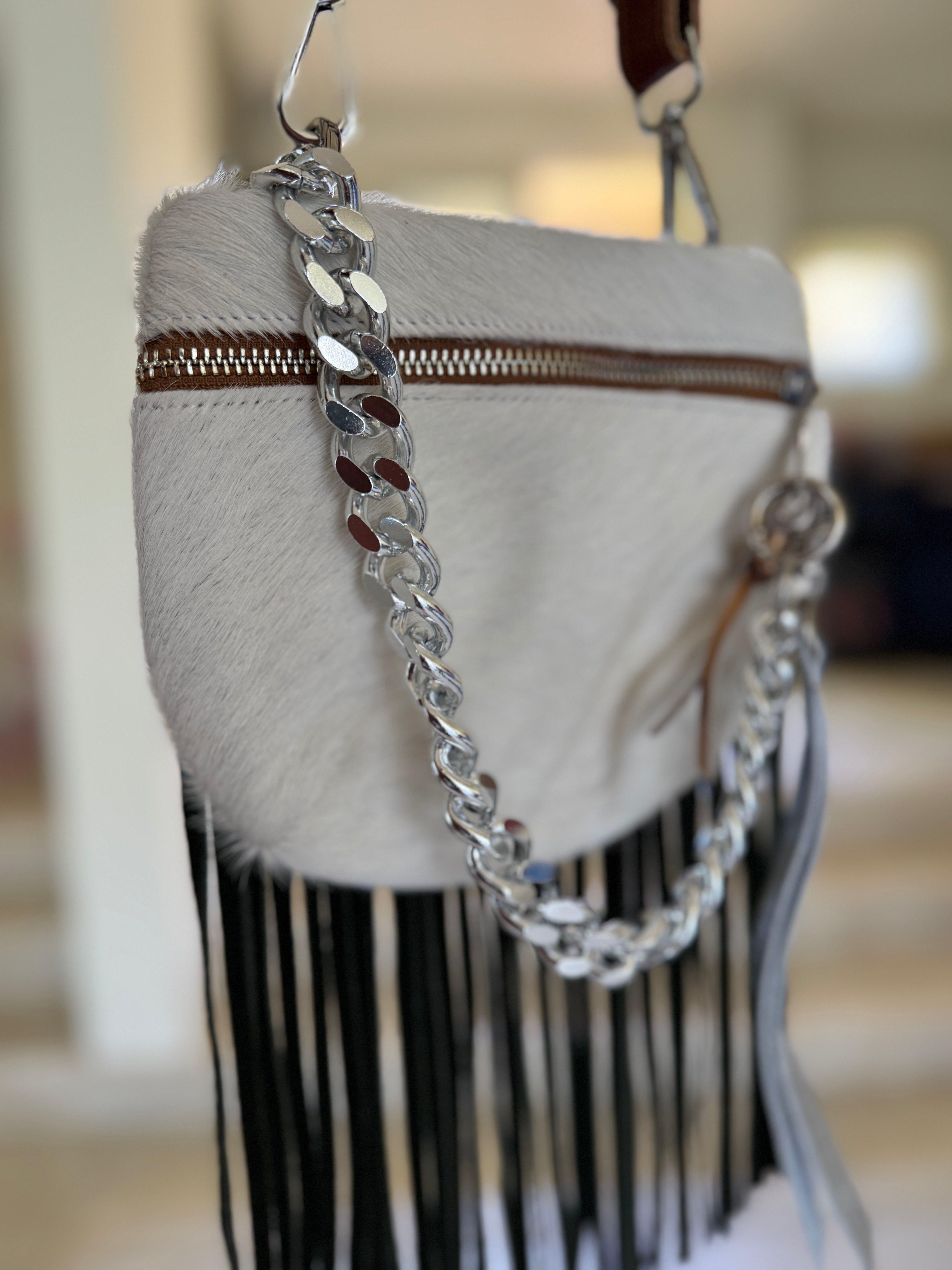100% cuero vacuno, excelente calidad  incluye fleco y cadena silver