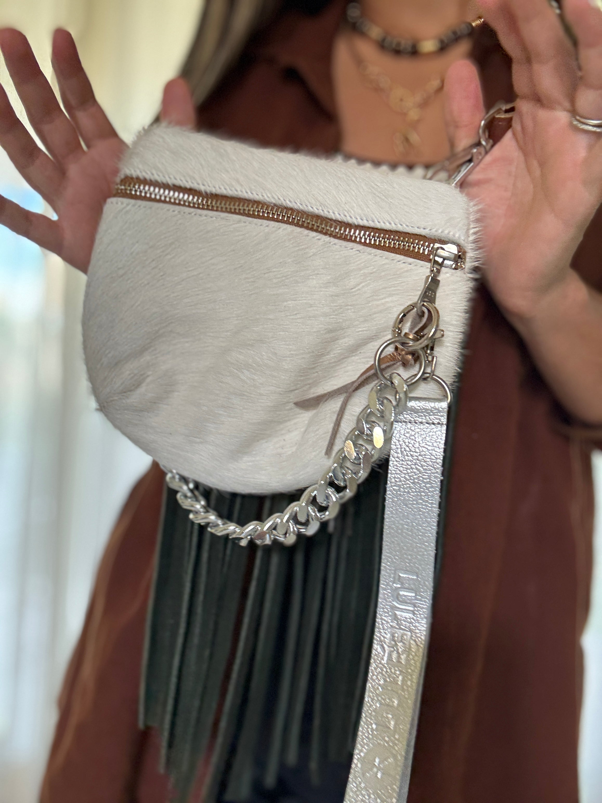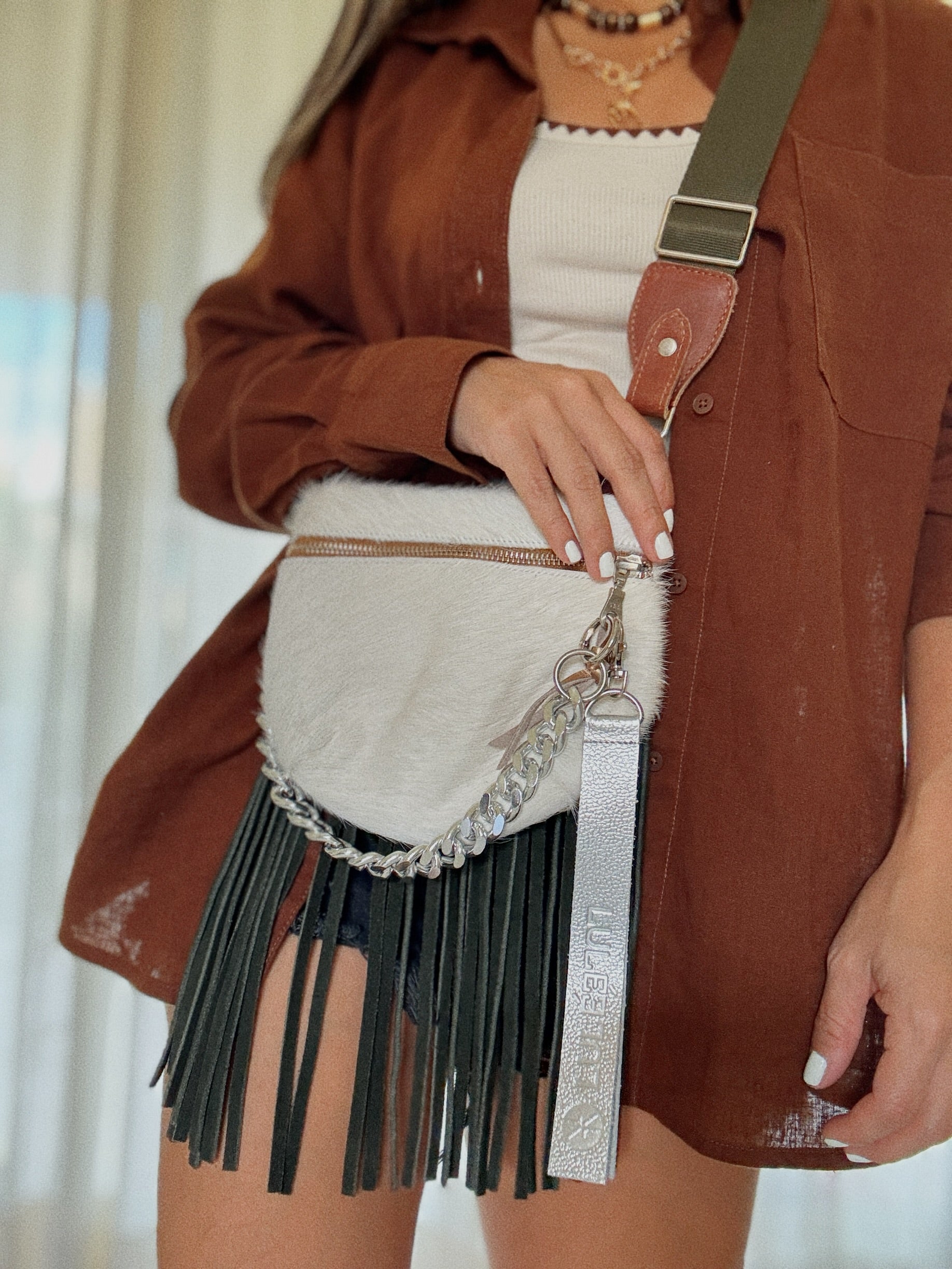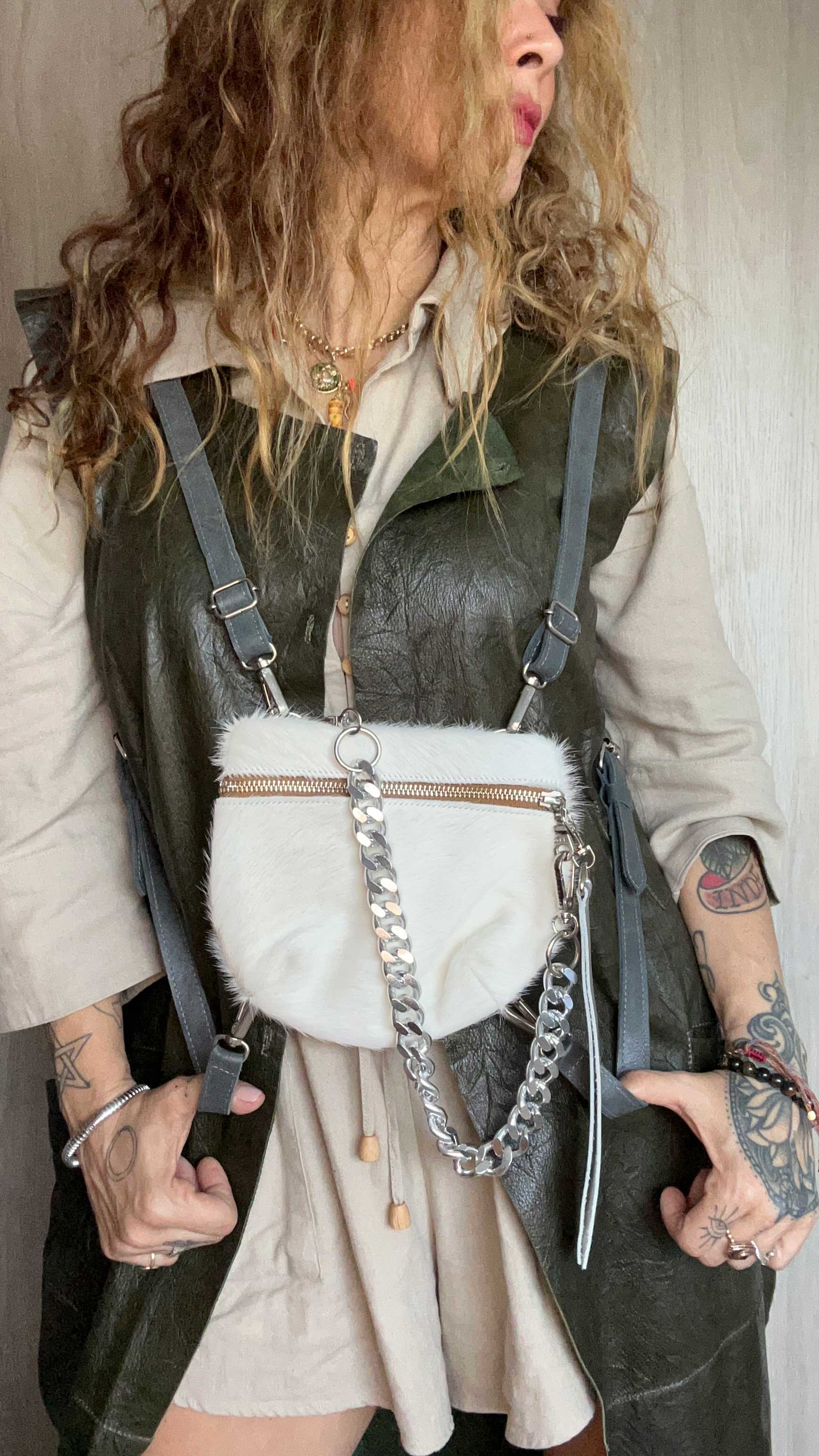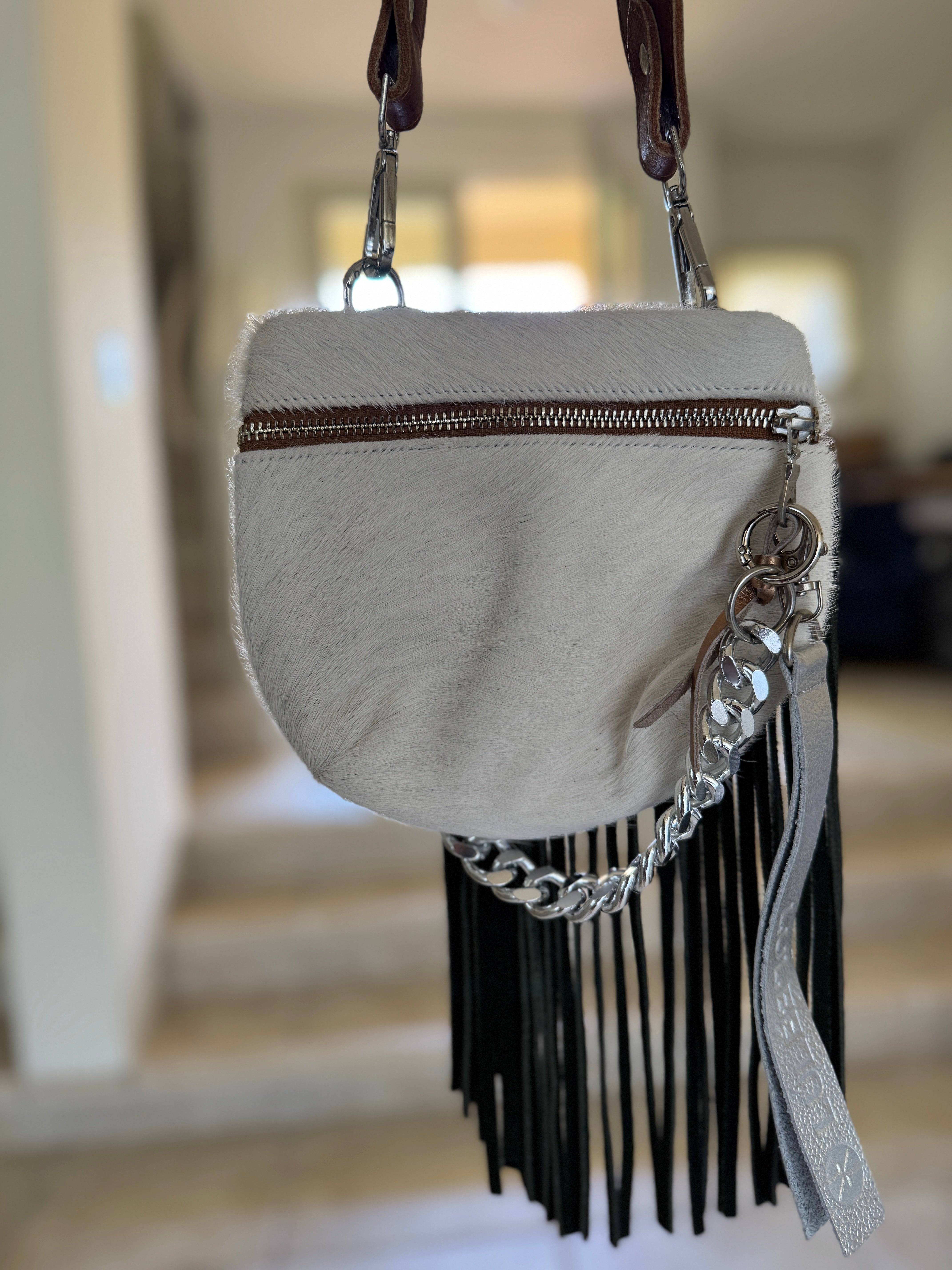 100% cuero vacuno, excelente calidad  incluye fleco y cadena silver