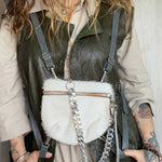 Nuestro Pocket Bag, elaborado por creativos artesanos 100% en cuero. Un nuevo diseño con muchas formas de llevarlo, esta edición incluye dos cargaderas en cuero para llevarlo de morral y una cadena. Puedes llevarlo de cartera cruzada, debajo del hombro o en la cintura como canguro. Mide 20 cms de ancho y de alto, con bolsillo externo en su parte posterior y 2 bolsillos internos para mayor seguridad. Incluye strap y flekos.