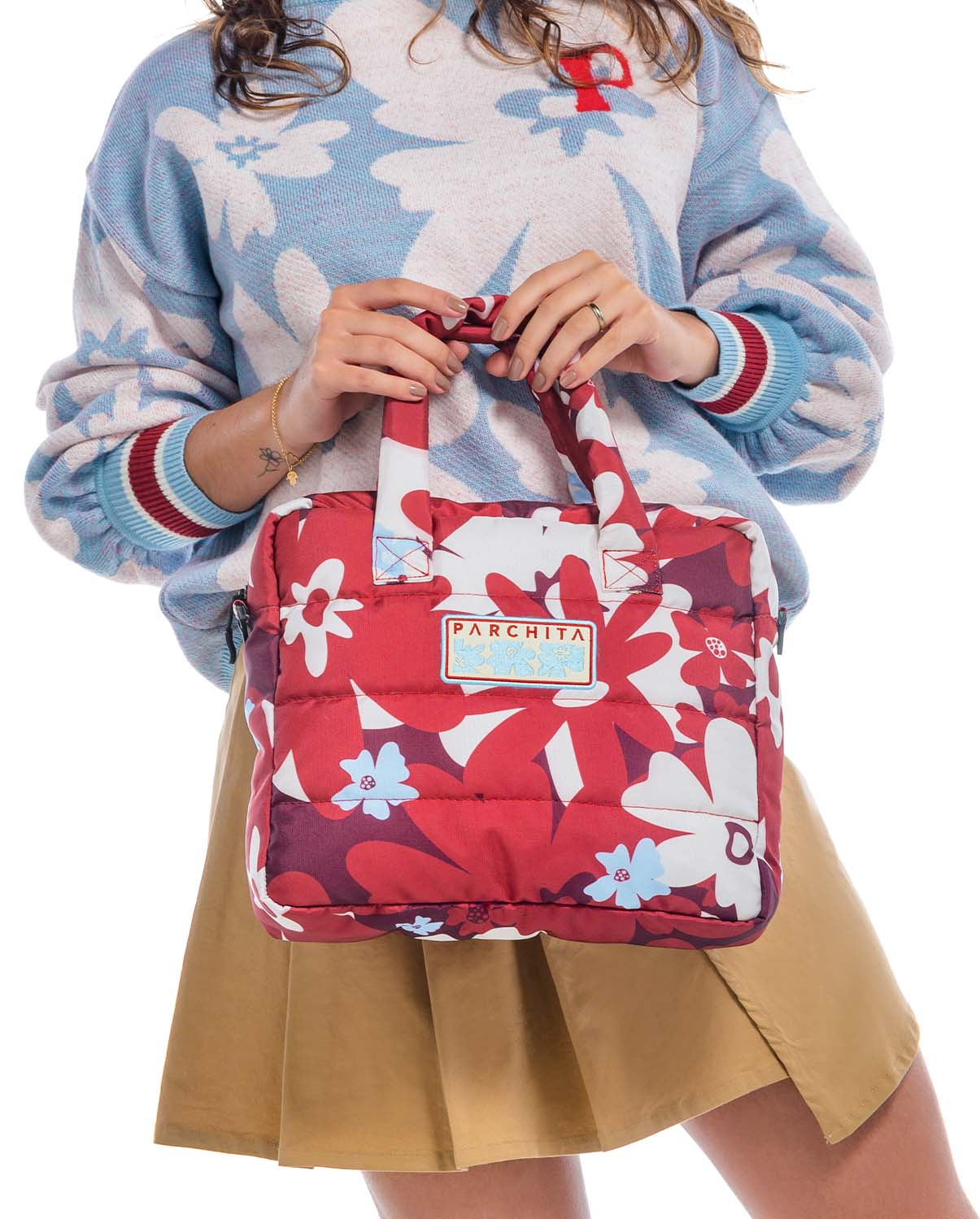 Practibag con estampado especial de flores de la colección, de tamaño mediano, ideal para el día y día. Cuenta con el tamaño perfecto para llevar tu Tablet o computador, y el resto de tus esenciales, de manera práctica, cómoda y con estilo.