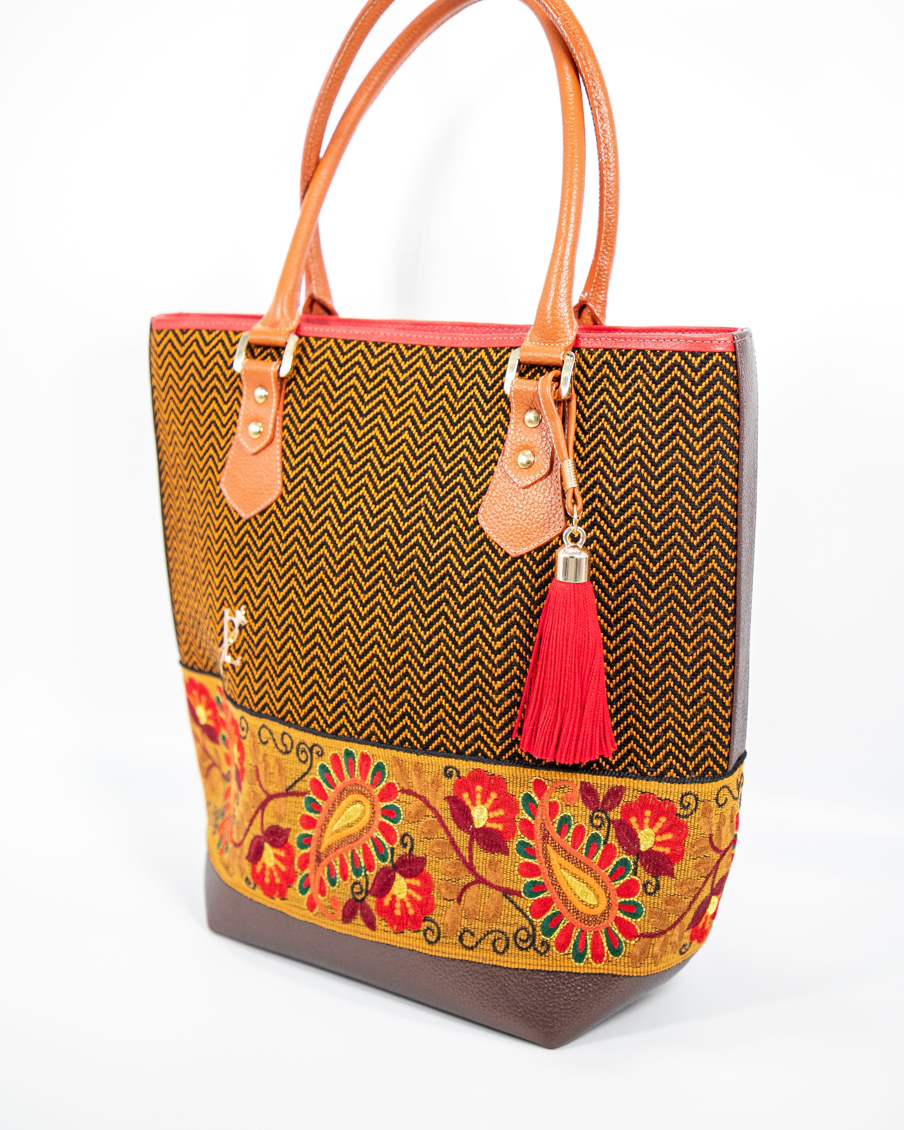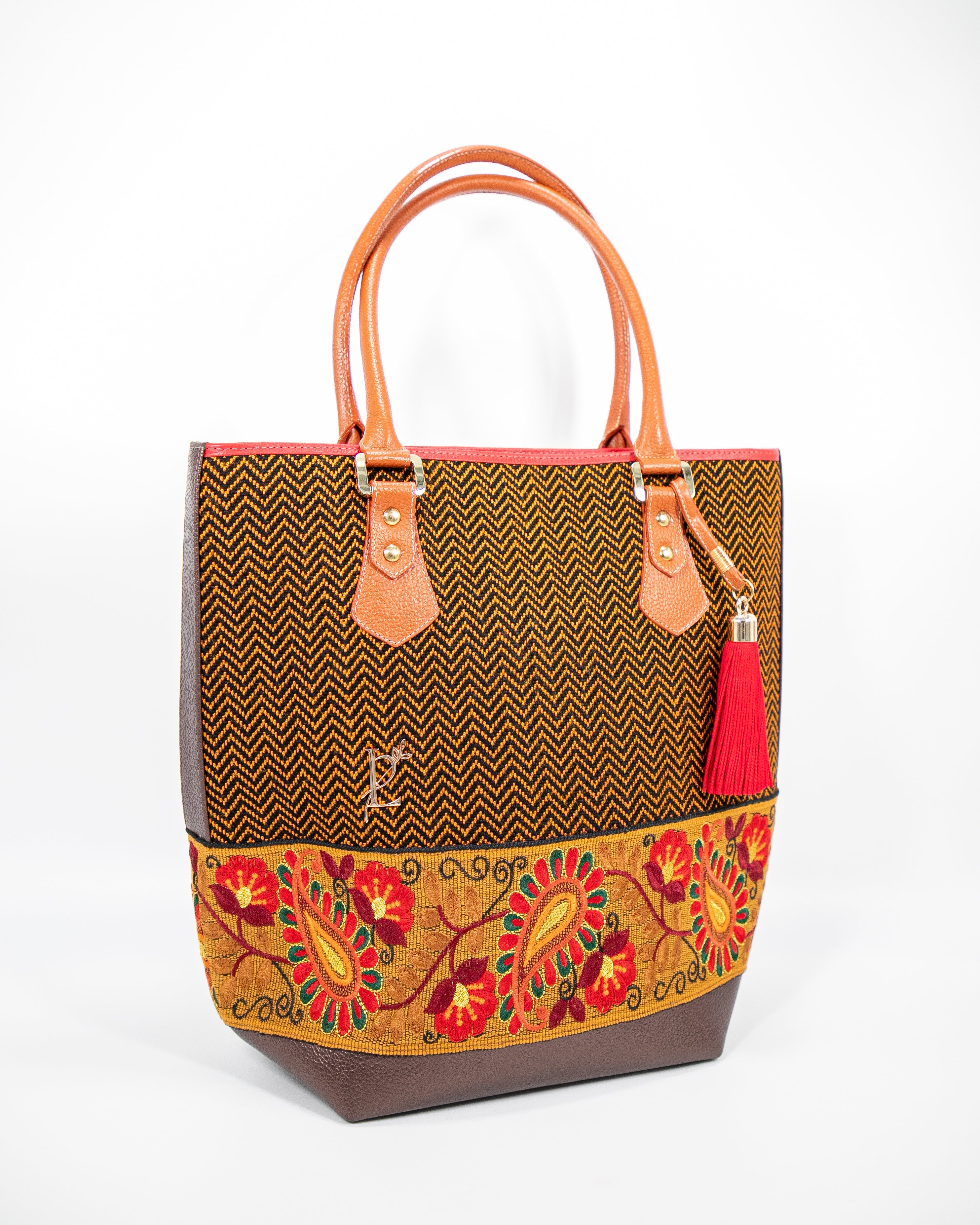 In The Andes region, a group of artisans hand-weave using ancestral techniques to perpetuate heritage. The well-meditated selection of threads, colors, patterns, and styles incorporate flora, fauna, and culture into every detail of this masterpiece. These ancestral techniques are combined with leather for a more elevated and fashionable look.