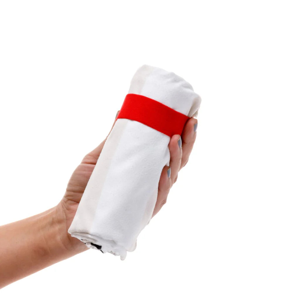 Toalla de microfibra inspirado en nuestra colección Snoopy x Vintro: In Bloom. Ideal para viajar. Alta absorción y secado rápido, tiene un elástico que le permite ser empacada de manera compacta en forma de rollo que permite llevarse fácilmente sin ocupar mucho espacio.