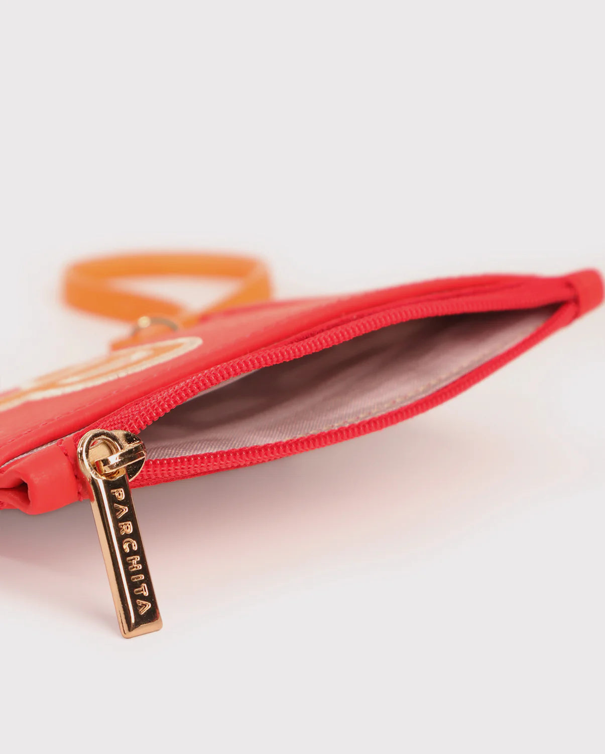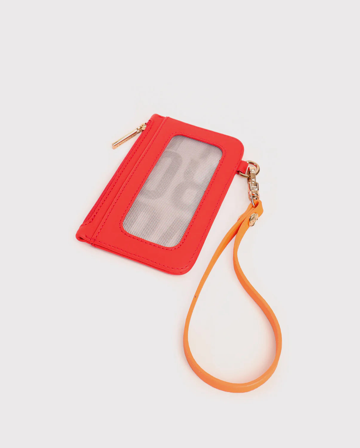Porta documentos mediano con 4 ranuras para tarjetas, una ventana trasera transparente para documentos o fotos y un bolsillo central con cremallera ideal para monedas. Es un diseño compacto y funcional que combina estilo y practicidad en un diseño juvenil y moderno, que gracias a su manija removible permite ser llevado en la muñeca.