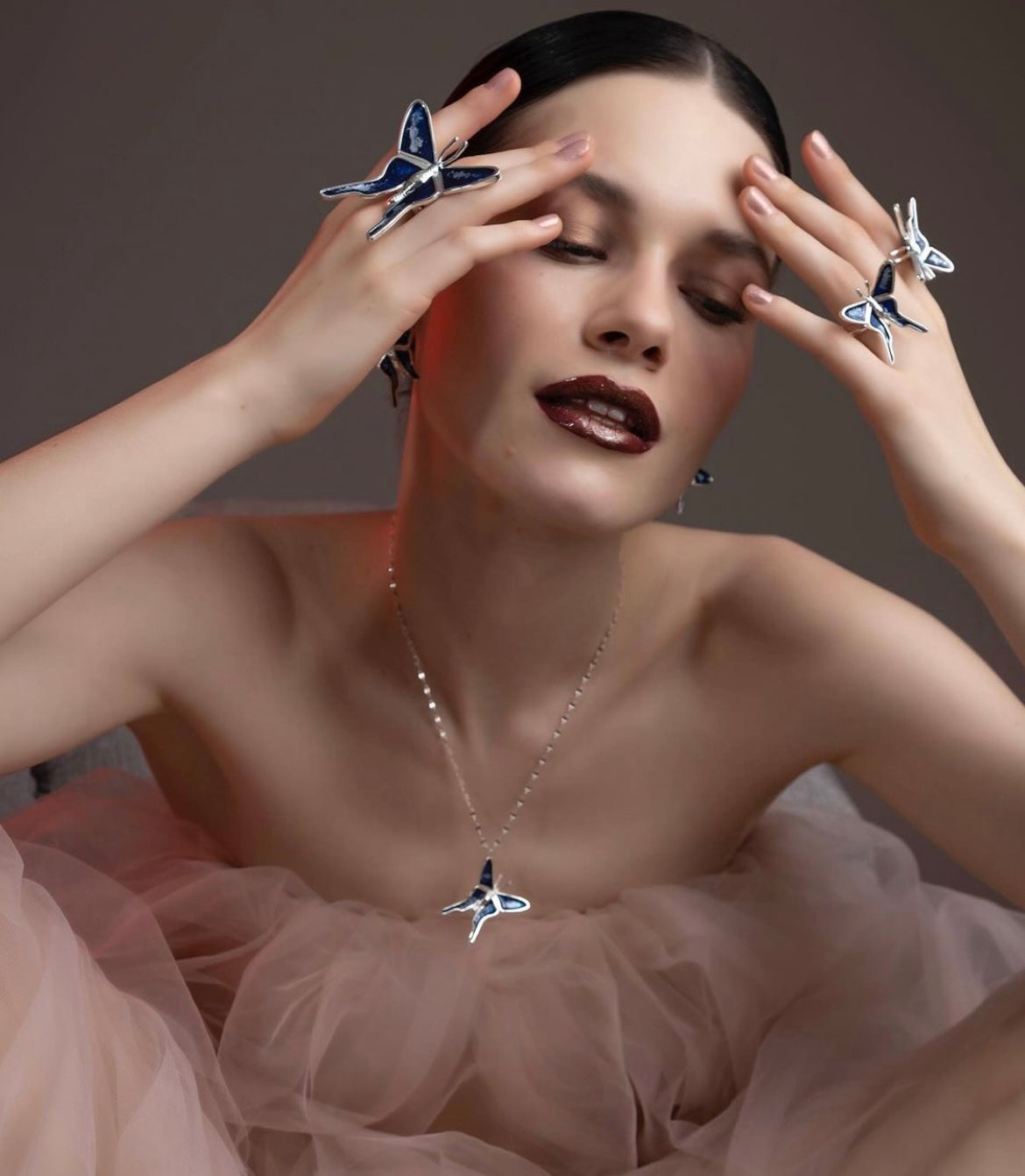 Tallado a mano en una aleación de cobre con baño de oro y resina especial.