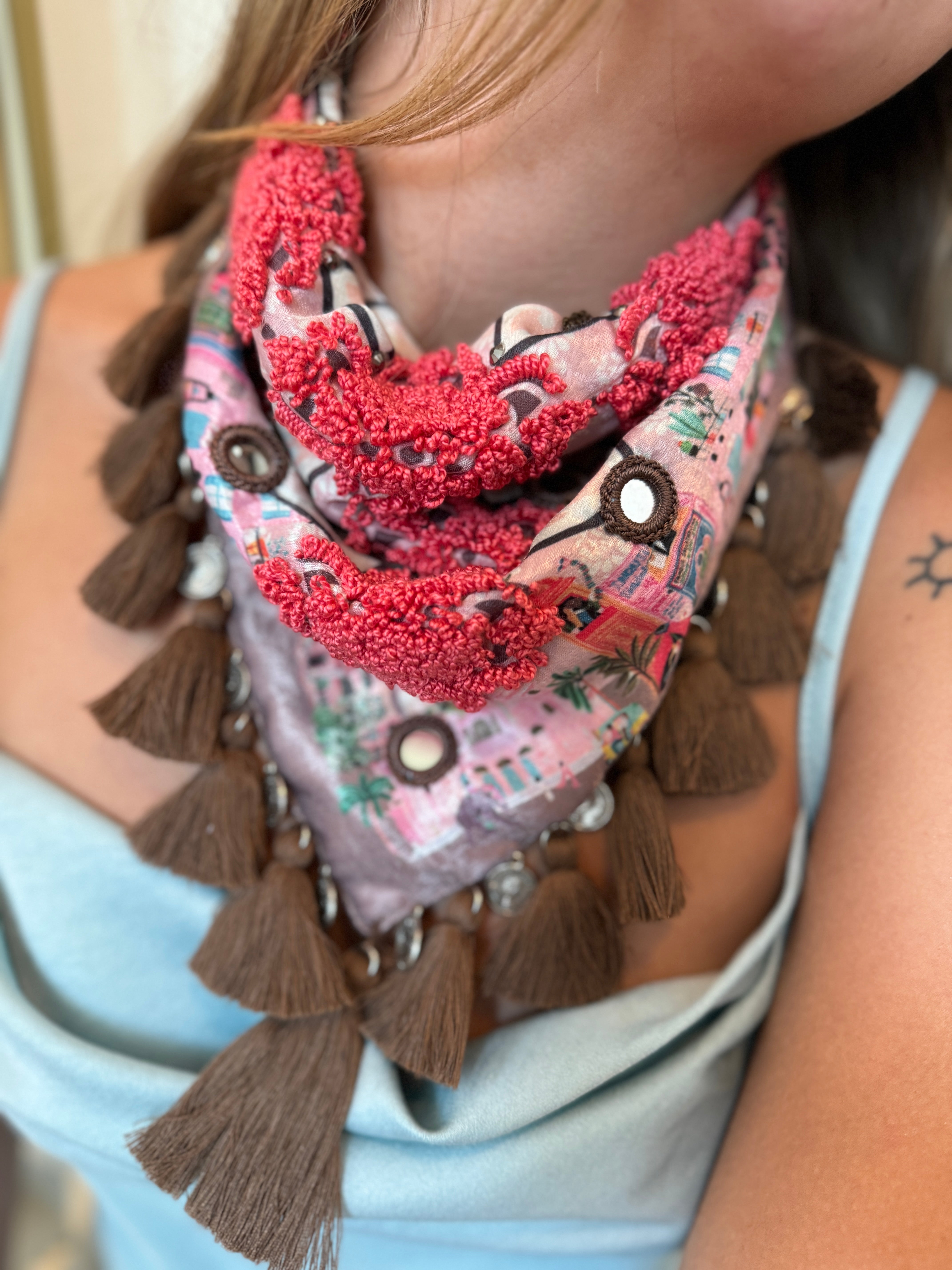 Scarves are the perfect accessory to upscale any outfit. It may be worn on your neck, face, head, or even as an ornament to beautify your bag.