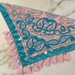 This 100% handmade scarf will give your attire a special touch. In these, the technique of hand embroidery is elevated with crystals, shisha mirrors, coins, and decorative tassels.