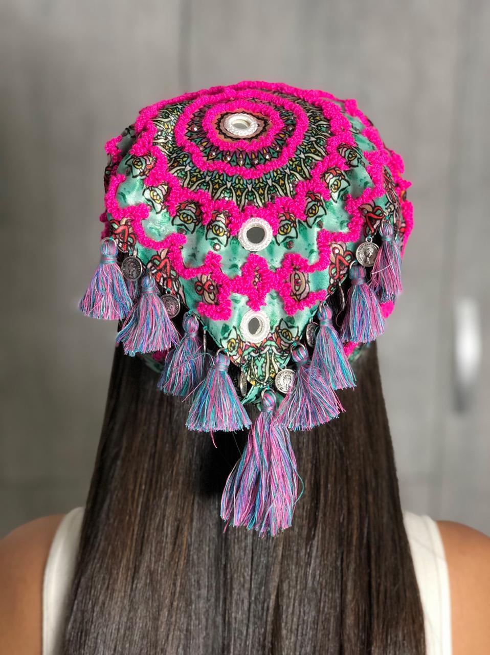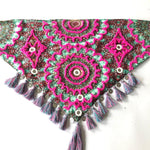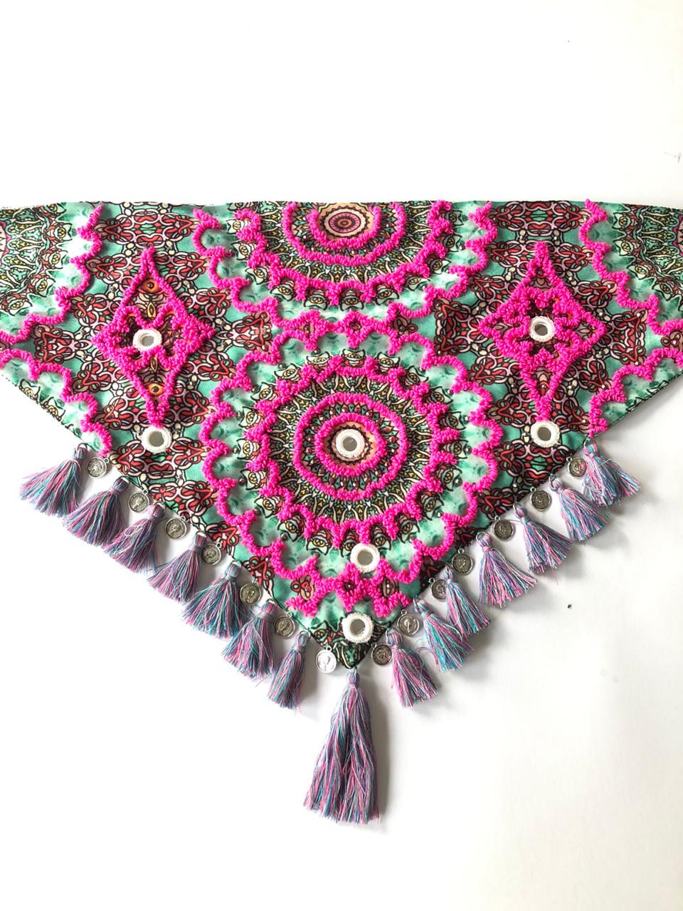 This 100% handmade scarf will give your attire a special touch. In these, the technique of hand embroidery is elevated with crystals, shisha mirrors, coins, and decorative tassels.