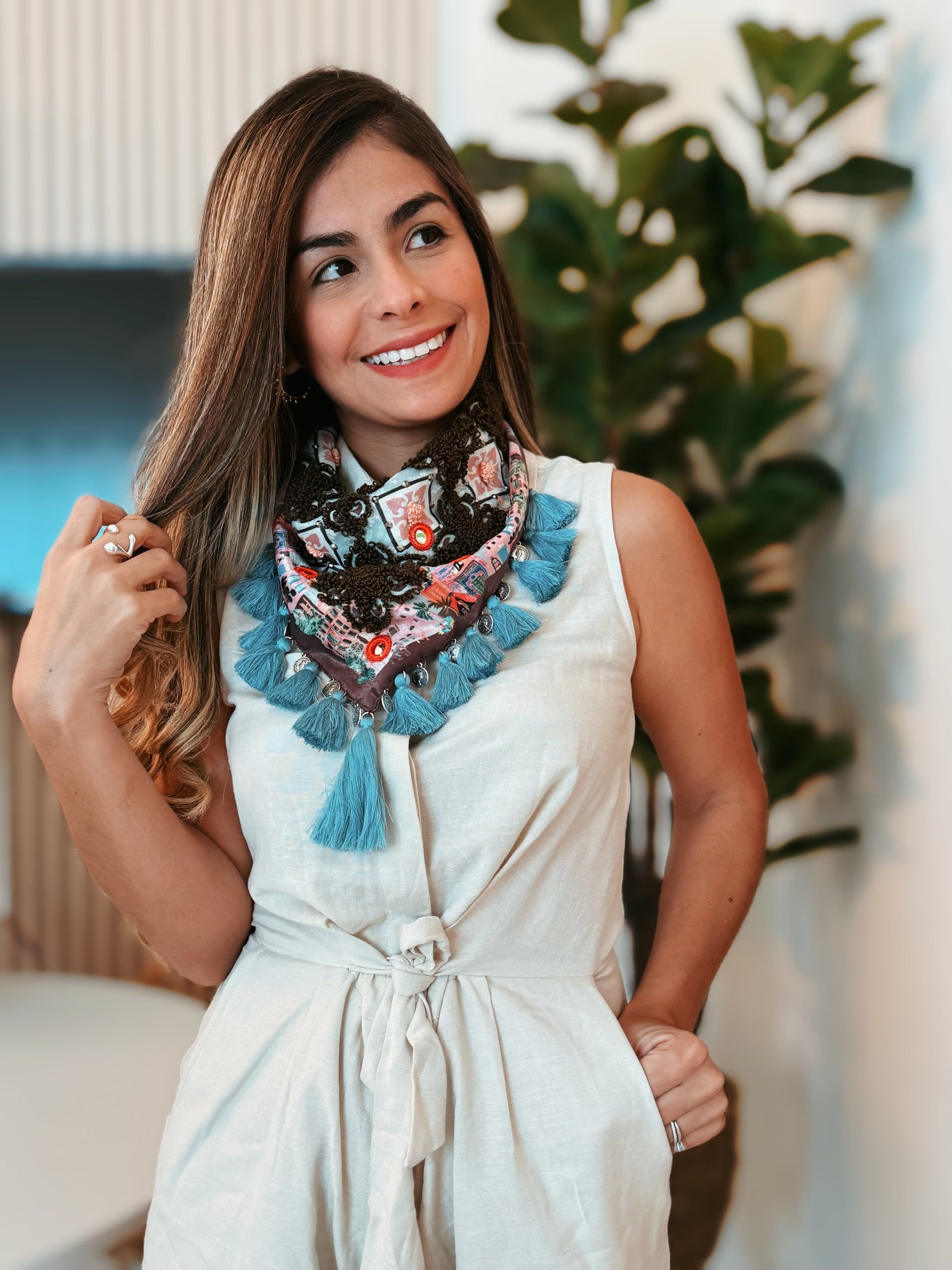 Scarves are the perfect accessory to upscale any outfit. It may be worn on your neck, face, head, or even as an ornament to beautify your bag.